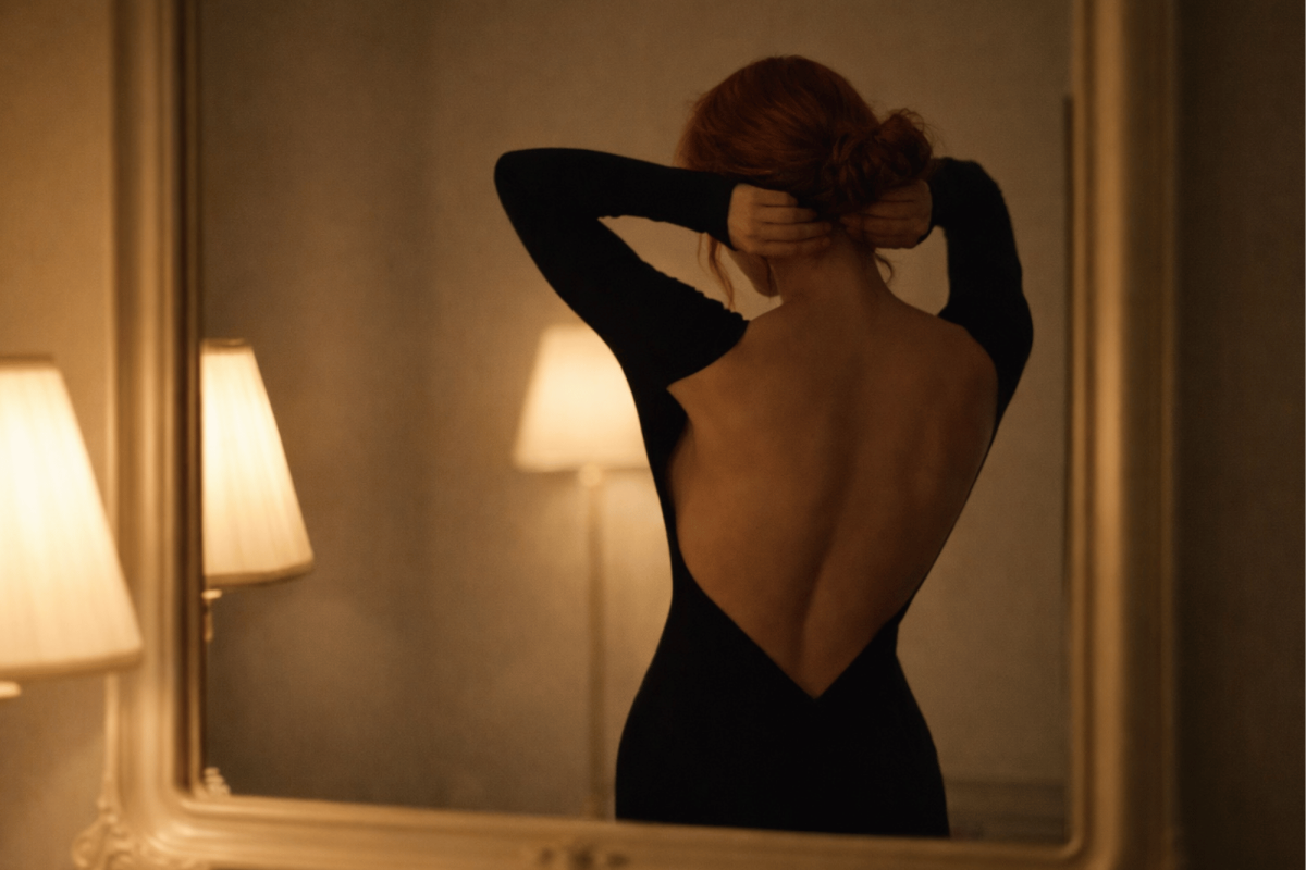 Whether it’s a body-hugging dress or cozy loungewear, her wardrobe supports her embodiment. Dressing becomes a sacred ritual, not a chore.